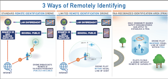 无人机的远程ID对监管机构和整个行业都构成了挑战。今年早些时候,FAA发布了有关远程ID 的拟议规则(NPRM)的公告。该提案为远程ID列出了3个选项,下面在FAA的此图中对此进行了阐明。