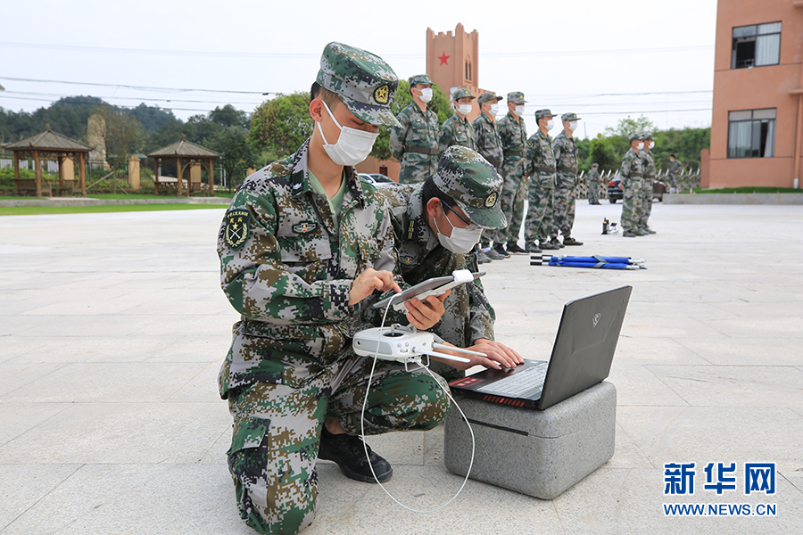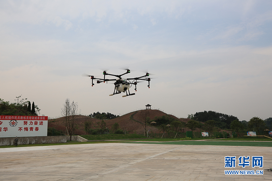 民兵们在进行无人机操作演练。新华网发