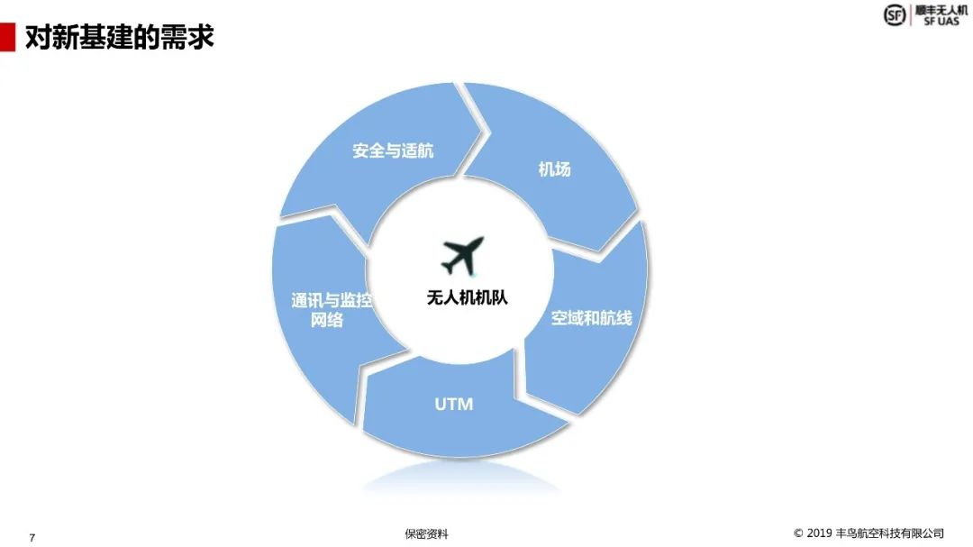 最后分享一下关于这种新的运输工具,对于新基建的需求。因为很多人觉得飞机的飞行只需要靠飞机本身就可以完成了,但是实际上它其实围绕着飞机还需要建立一系列的基础能力,去保障飞机本身,同时也是保障了所有在地面的人员财产和生命安全,同时也是对有人机的空域进行了很好的保护,所以我们主要的需求来自于这张图上的5个方面,首先需要有一套规章制度去对本身的安全背景去进行一个保障,同时也是对我们提出的要求。