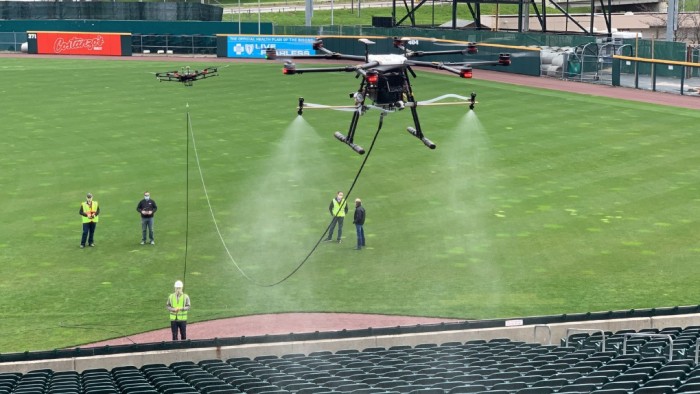 据外媒报道,毫无疑问,想要让大型体育场式的赛事再次出现在公众面前还需要一段时间。然而,一旦实现了,看台仍然可能需要在每次使用后进行消毒。一家美国公司正试图利用无人机简化这一任务。据悉,由无人机技术初创公司EagleHawk开发的新系统最近在公司所在地--纽约布法罗的Sahlen Field进行了演示。