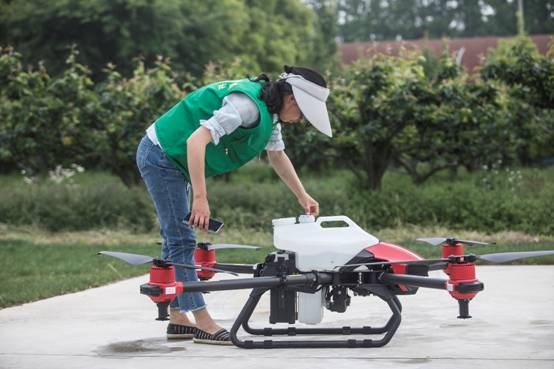 空中,植保无人机可以覆盖树冠部分的农药喷洒,精度可以达到厘米级,它不但可以节省20%的用药量,而且极大节省人力。同样一块地的施药,4个熟手需要忙碌半个小时,而用无人机,两名农民2分钟就可以完成,效率提高30倍。