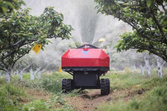 (图说:无人值守果园机器人正在施药,可在酷暑下代替农民干累活)