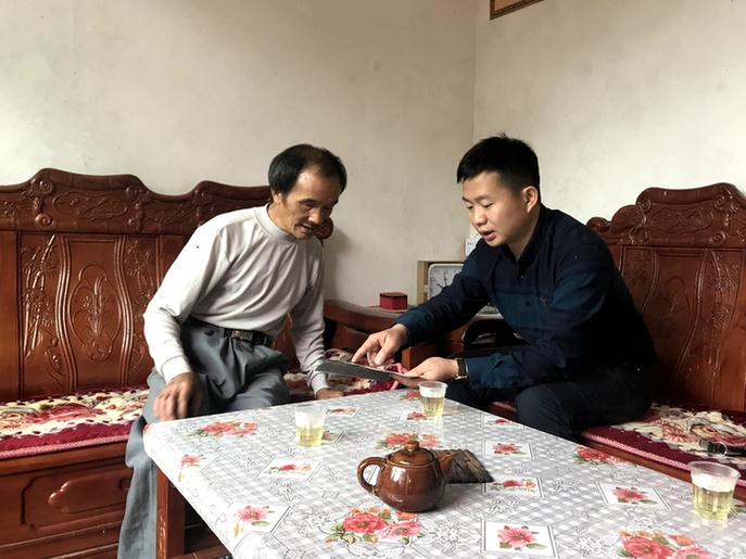 赵少辉正在跟贫困户解读政策。(右一)