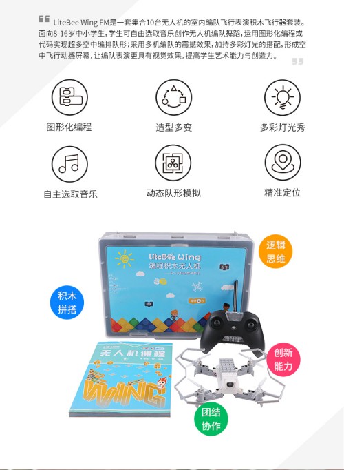 编程教具的目标是培养孩子的创新能力,目前市场上编程教具品类众多,但类似创客火(Makerfire)LiteBee Wing FM这类可延续性、多应用场景的高科技编程教育产品还是凤毛麟角。相信其在面向青少年的无人机科普教育以及编程教育的环节中会发挥出更大的价值。