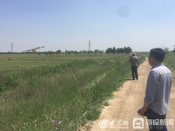 大众网·海报新闻无棣5月22日讯(记者 苏建军 通讯员 陈延玉 孙振福 张延祥)为做好黄锈病、白粉病等病虫害的防治。5月22日上午,在碣石山镇馆里村种植合作社种植的小麦农田里,技术人员正在操控一架无人机实施农药喷洒,仅仅用了5分钟就完成了10余亩的农田“飞防”任务。