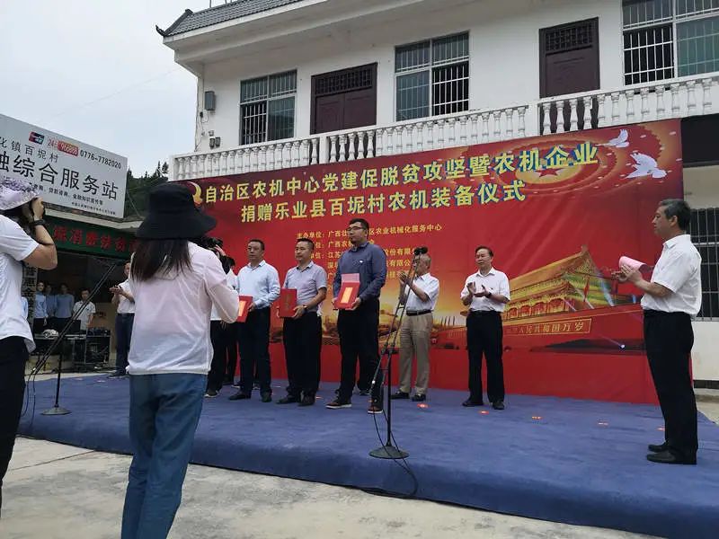 5 月 21 日,广西壮族自治区农机中心党建促脱贫攻坚暨农机企业捐赠乐业县百坭村活动在百色市乐业县举行。大疆农业受邀参与了本次活动,并捐赠了植保无人机 T20 。