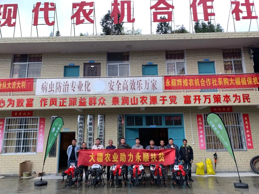 永顺县地处湖南省湘西土家族苗族自治州东北部,是国家深度贫困县。深处大山,大田作物种植成本偏高,永顺县被列入全国 585 个贫困县之一。为帮助当地脱贫摘帽,解决区域性整体贫困,大疆农业联合农业农村部农机推广鉴定总站,在当地开启了扶贫工作。