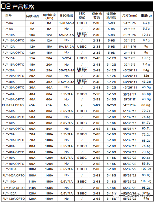 FlyDragon Lite系列电调采用功能强大C8051F850MCU,8位C8051核心,精心的电路设计,抗干扰性超强,电调尺寸小、重量轻,具有多种安全保护功能,内置BEC。