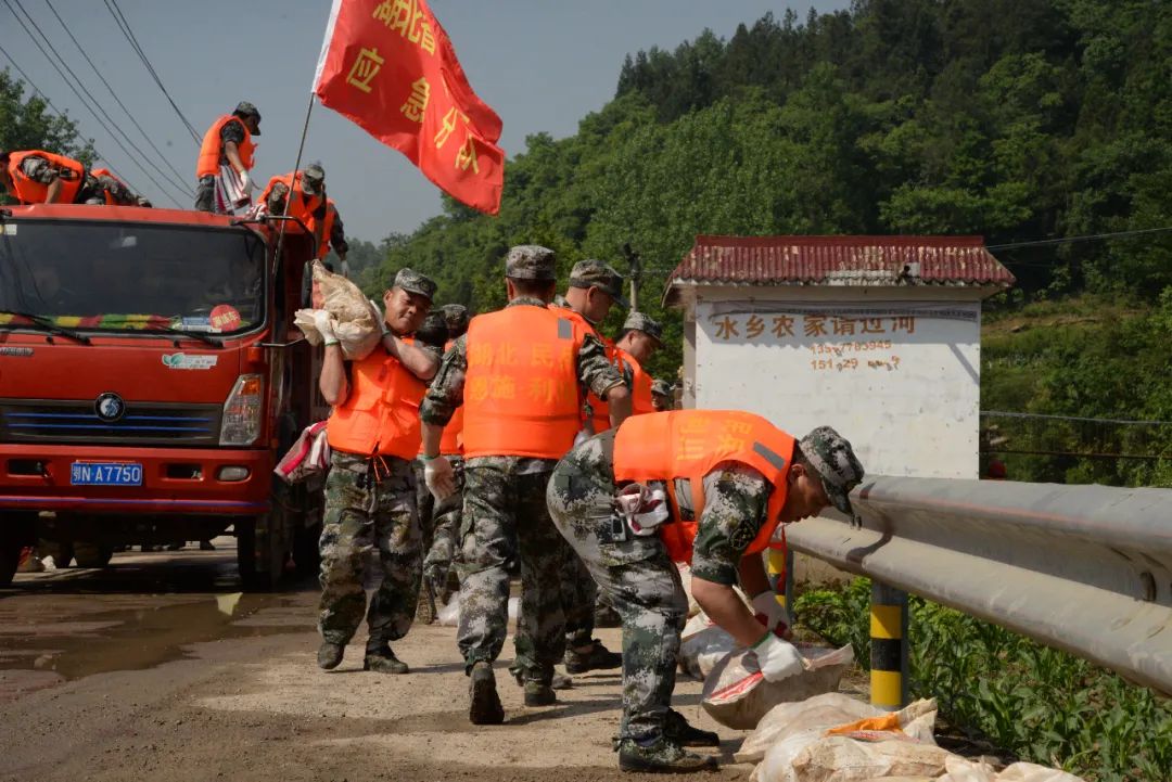 民兵们迅速对河堤进行抢险加固