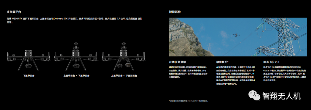 大疆解决方案经理王鹏,详细介绍了此次新品经纬M300RTK以及首组混合传感器云台相机禅思H20系列的新功能。