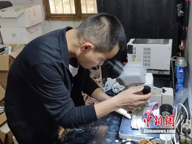 刚入行的孔凡焱什么都不懂,有一次,他把无人机的排线装反导致主板烧了,还赔了1000多元。跟着师傅学习了大半年后,孔凡焱很快在无人机修理行业站稳了脚跟。