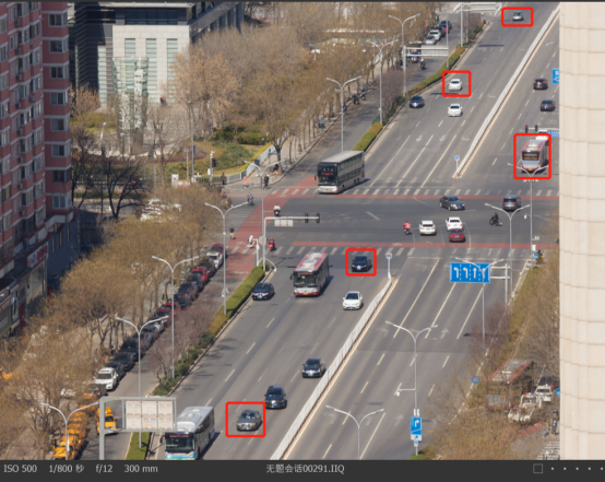 选取地面距离300米、500米和600米距离拍摄车辆车牌,把影像放大到100%。