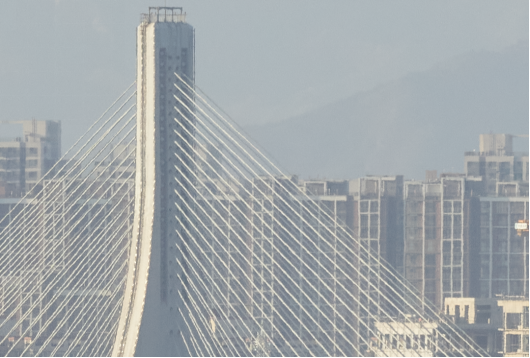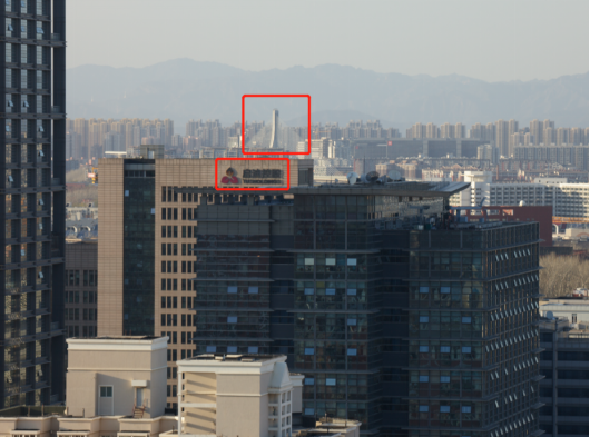 将300mm镜头在f8和f18分别拍摄远处建筑物影像对比。