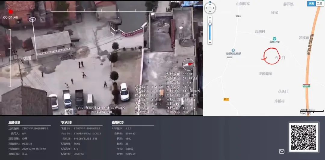 新冠疫情期间,3VS无人机先后配合南昌、上海、苏州等多地一线公安人员,展开空中巡查任务,并配合云巡直播系统平台,远程办公管理。