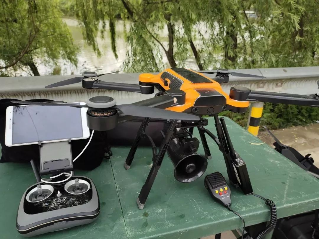 GUD SAGA挂载无线喊话器在河面上空喊话