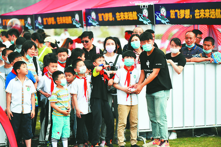 5月30日,在合柴1972文创园,一场无人机试飞体验活动吸引了不少在此游玩的市民,现场精彩的无人机表演让市民们大开眼界,同时主办方还设置了无人机试飞体验环节,灵动新奇、变幻多姿的无人机让孩子们竞相体验。主办方告诉记者,希望通过体验航模试飞,激发广大青少年感知科学、学习科技的兴趣。