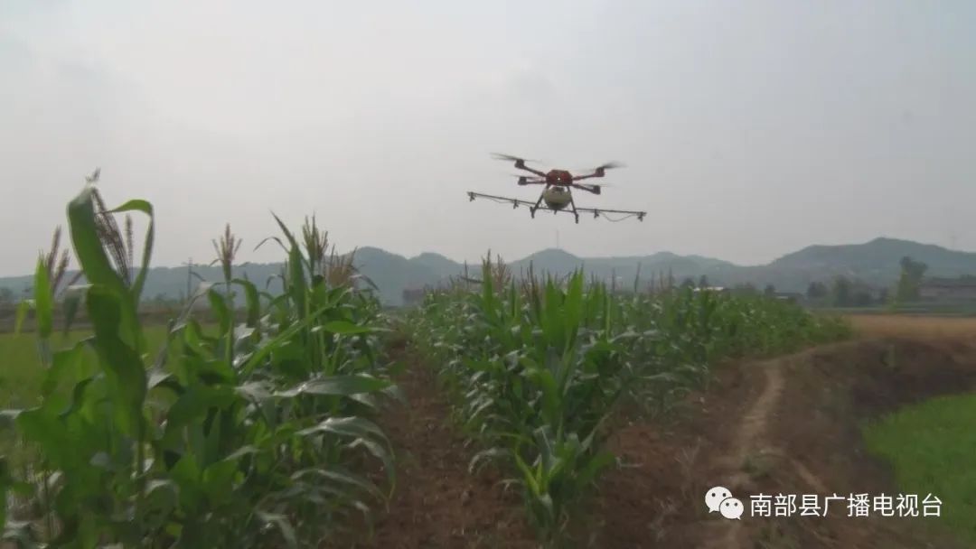 5月29日,记者在老鸦镇梓橦村草地贪夜蛾防控示范区看到,一架无人机正在进行喷洒作业,对草地贪夜蛾进行有效防控。
