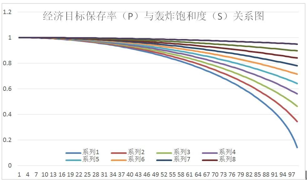 图1 经济目标保存率(P)与轰炸饱和度(S)的关系图