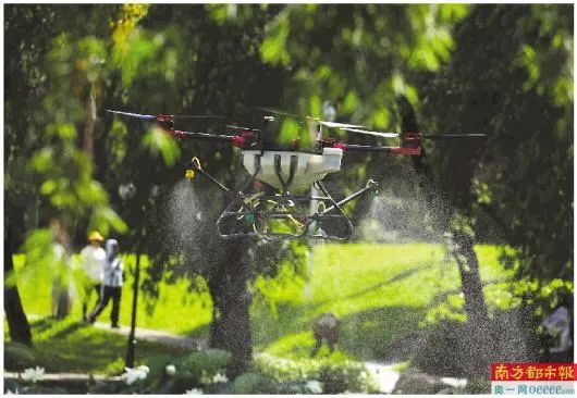 天鹰兄弟植保无人机正在作业 (南都记者 胡可摄)现如今,洪湖公园引进植保无人机技术防治病虫害,天鹰兄弟植保无人机化身“护花使者”,守护荷花如期开放。植保无人机解决了人工作业的局限性,药液均匀喷洒至作物各个层面,大幅提高农药利用率,作业效率高,防治效果好。