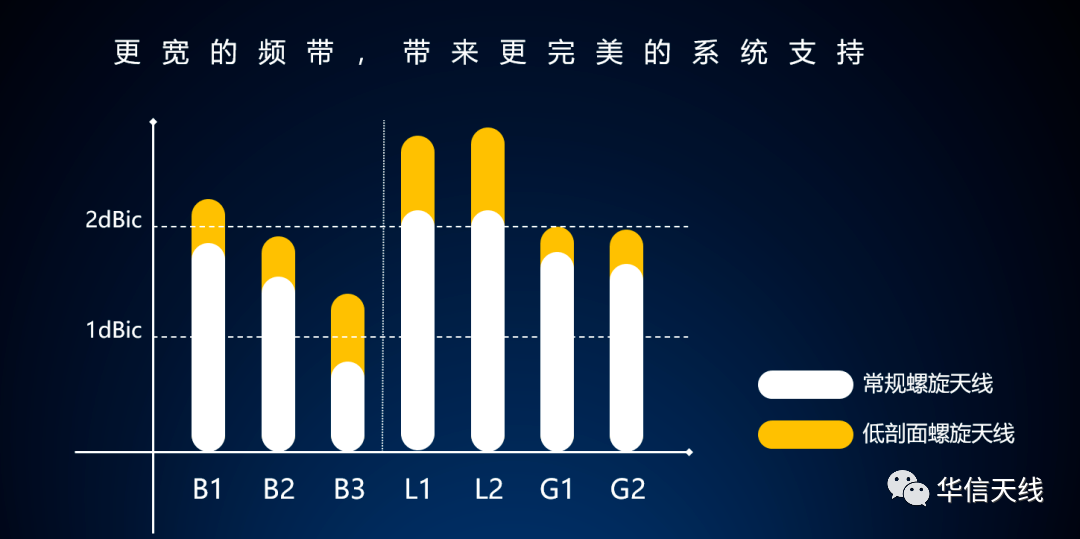 针对目前“北斗三号”已逐步组网成型,低剖面螺旋天线在频带上针对边频性能进行了针对性优化升级,各频点较常规螺旋天线性能提升约20%,B3频点性能提升了整整一倍,搜星定位能力更强!
