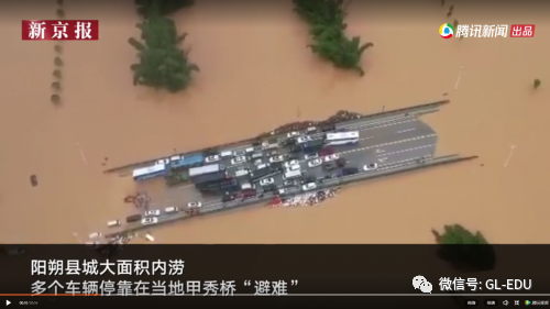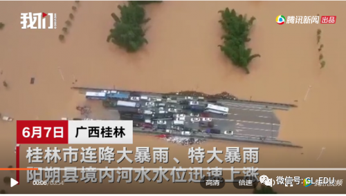 近日,广西桂林连降特大暴雨,阳朔县河水水位上涨,县城大面积内涝,无人机拍到多个车辆停靠在大桥上“避难”,镜头拉近更是令人窒息。