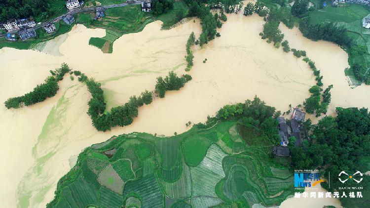 新华网消息,近日,重庆市酉阳土家族苗族自治县出现暴雨天气过程,强降雨导致酉阳县境内各乡镇河流出现超警戒水位洪水。目前,洪涝灾害已造成铜鼓、涂市、龙潭等多个乡镇的场镇道路、房屋、农作物不同程度受灾。新华网发(陈碧生 摄)