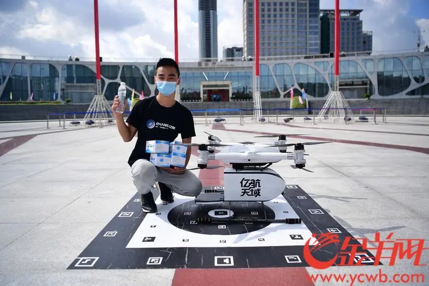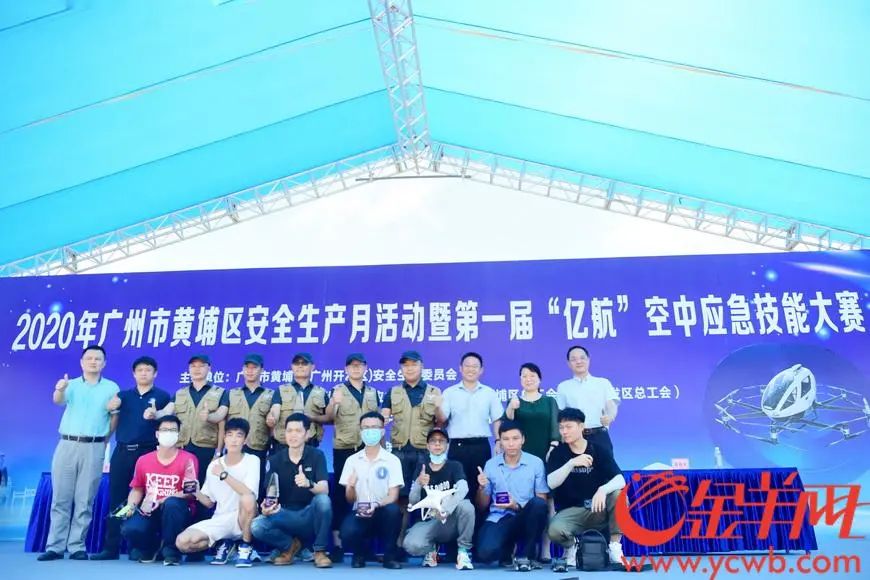 本次大赛,亿航智能出动了曾参与黄埔区防疫演练的天鹰飞行器,现场运送包括口罩、医疗箱和水等紧急救援物资。比赛现场,亿航天鹰飞行器在指挥调度系统的集群控制下稳稳起飞,按照预设好的航线,将救援物资准确运送到广场,充分展示了亿航自动驾驶飞行技术在应急场景下真实、高效的应用。