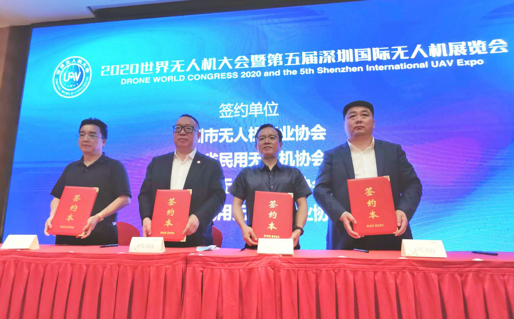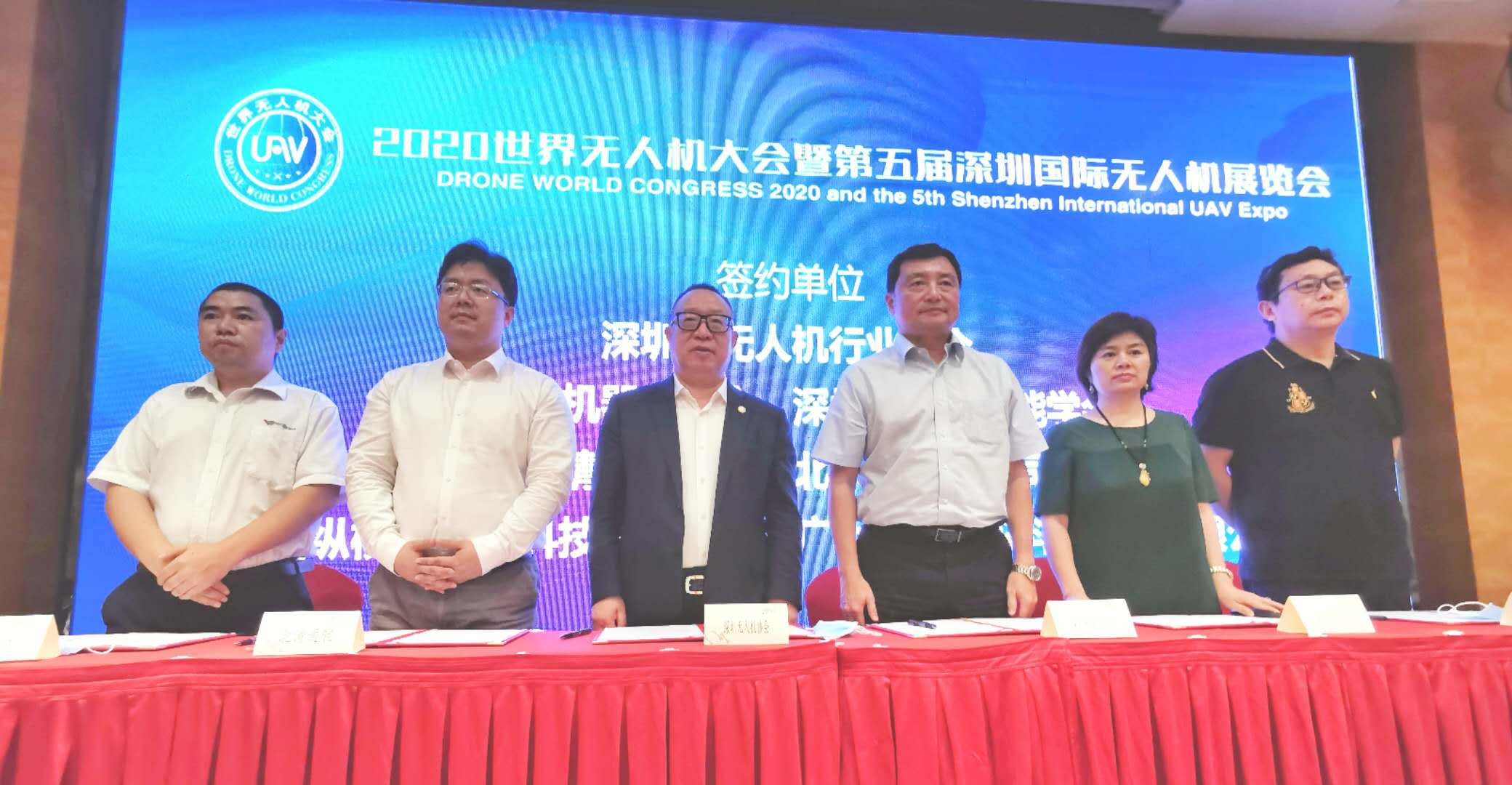 在新闻发布会上,大会主办方深圳市无人机行业协会与工业和信息化部电子第五研究所、国家精准农业航空施药技术国际联合研究中心、贵州省民用无人机行业协会、贵州省大数据发展促进会、深圳市机器人协会、深圳市人工智能学会、北清通航科技(北京)有限公司、深圳纵横无人机科技有限公司、广州市华科尔科技股份有限公司、航天神舟飞行器有限公司、深圳彩虹鹰无人系统研究院、福建省民用无人机协会、惠州市无人机应用协会、临沂市民用无人机行业协会举办了合作签约仪式。