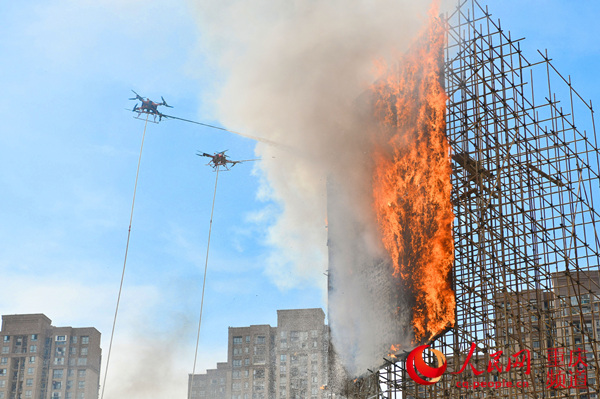 此次演练中,多机种多功能无人机系统承担了火情侦查、破窗投送防毒面具和防火服、破窗投送消防水带、扑灭明火等多重任务,为科学制定救援方案、安全解救被困人员、迅速有效灭火提供了有力的硬件支撑。整个演练中,应急救援队伍展现了中低层建筑消防登高平台地面救援,中高层无人机协同救援,超高层楼顶建立空中生命救援通道,以及地面消防和无人机协同实施高楼外立面灭火等多个演练场景。
