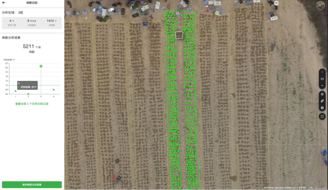 通过极侠遥感农业无人机拍摄,对农作物进行基本苗统计,种植主就能知道农田是否缺苗,并最终决定对农田补苗还是补肥,最大程度避免农田减产。