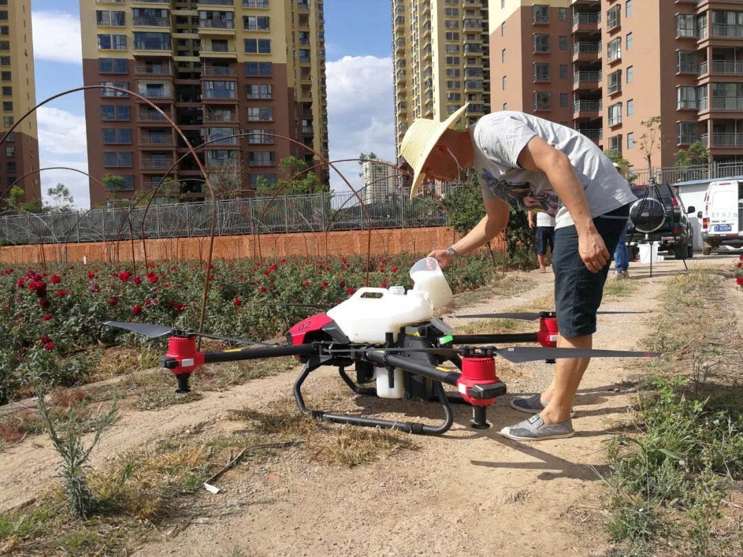 无人机喷洒农药,16分钟搞定8亩玫瑰花田