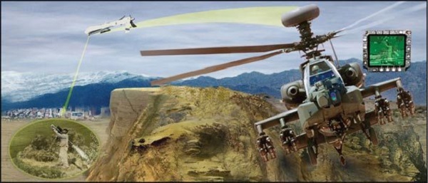 资料图片:美军AH-64E武直遥控“灰鹰”无人机作战示意图。(美陆军官网)