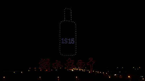 漆黑的夜幕中,一个个色彩斑斓的光点从地面整齐排列,场面甚是壮观,衡水老白干1915在灯光的映衬下,也显得尤为高贵。随着导演团队一声令下,400架无人机汇聚起来直击夜空,分别变幻成“衡水老白干1915”产品图案以及“衡水老白干”和“喝老白干 不上头”字样。无人机编队整齐划过夜空,灯光闪耀,点亮苍穹,让夜幕“星光”璀璨,开启了一场天幕舞台中的绚丽大秀表演。