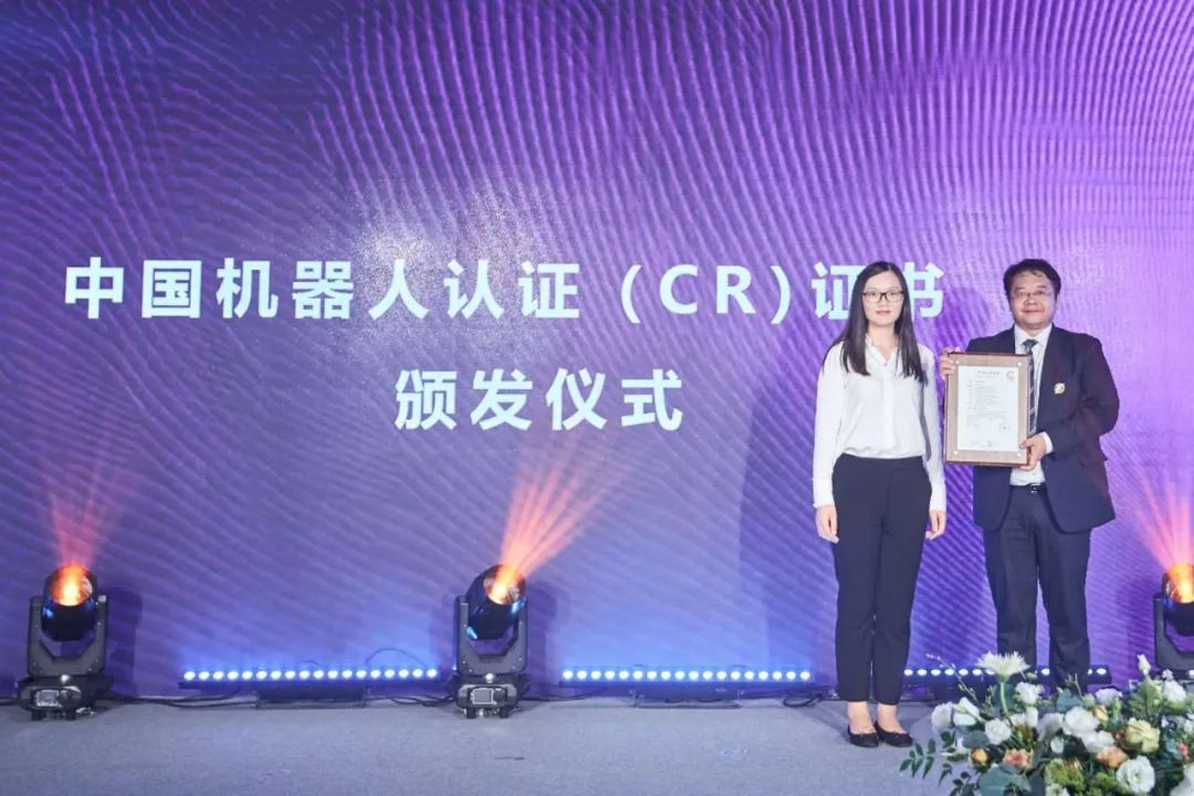 黄慧洁女士代表上电科下属认证公司——上海添唯认证技术有限公司(下称“添唯”)为千玺集团旗下第二代煲仔饭机器人和迷你雪糕机器人颁发中国机器人CR证书。