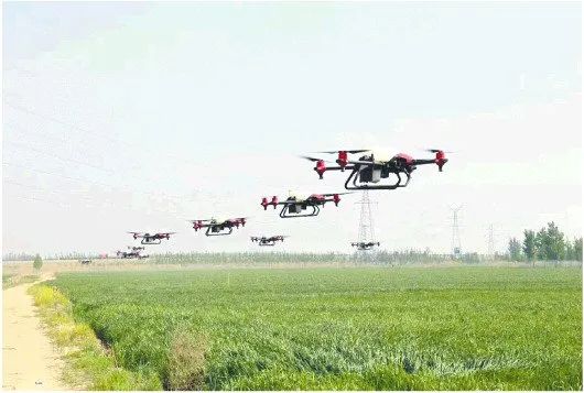 疫情期间,三河湖镇进行了整建制集中飞防消杀。“我们投入了5架4旋翼植保飞机及多架自走式喷药机,组织15名技术人员分成5个组,利用3天时间,集中精力对三河湖镇77个村全部飞防消杀了一遍。”张绪国说。