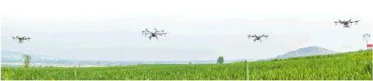 今年4月,谷雨节气来临之前,山东一家农业合作社利用植保无人机对小麦进行大规模喷药作业。(□CFP 供图)