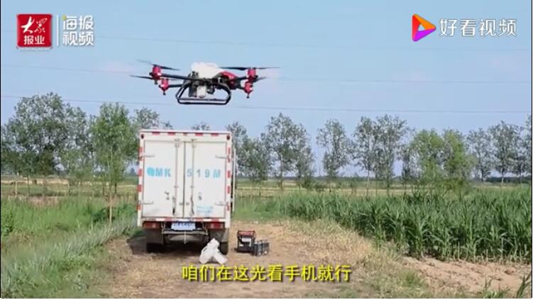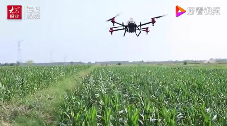 规划路线、设置参数、打开手机一键启动……在滨州市滨城区供销社三河湖植保飞手胡天亮的操控下,瞬间,一架重达30多斤的植保无人机便起飞盘旋在玉米地上空,为玉米作物均匀地喷洒着杀虫剂。