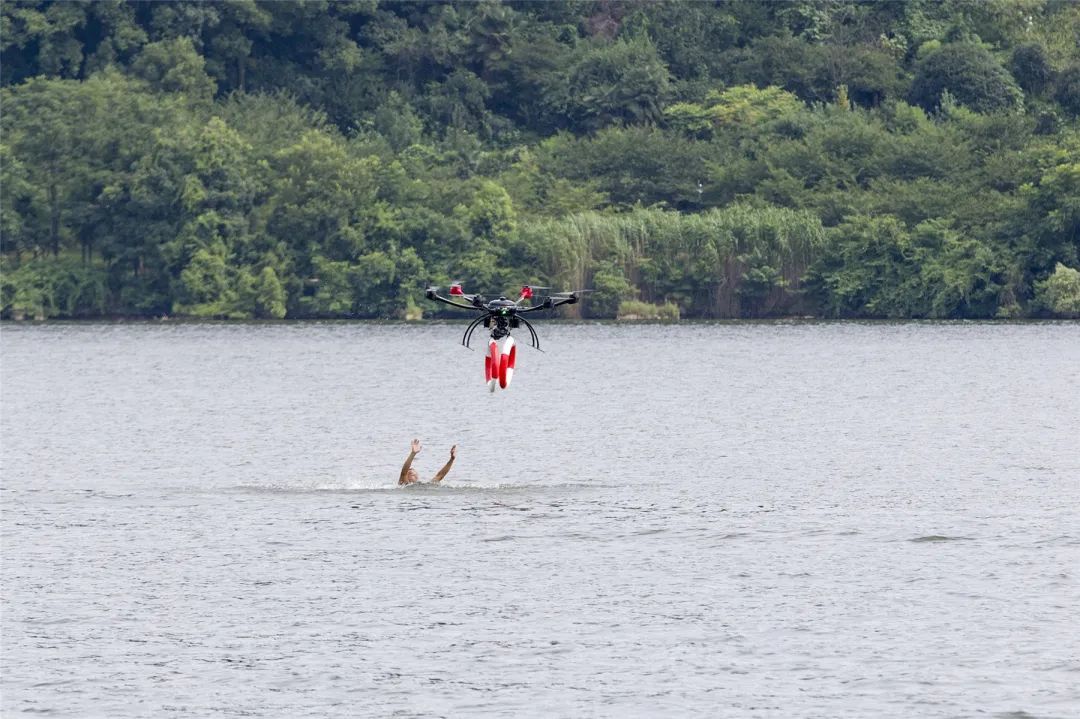 锁定落水人员位置,并投放救生圈。水上