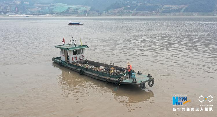 这是7月4日拍摄的长江巫峡段,洪水进入大宁河后,当地组织开展清漂工作。朱云平 摄