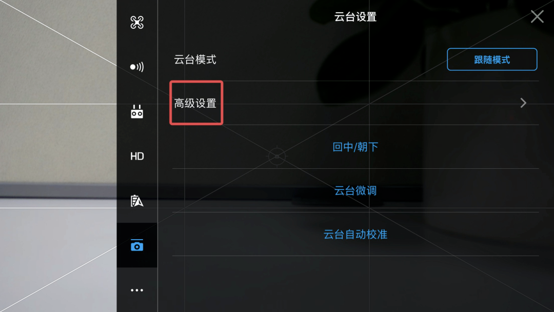 相比无人机遥控器的右侧拨轮,左拨轮的作用就简单得多——仅仅用于调节云台相机的俯仰。但根据云台相机的运动特性,以及视频拍摄时的不同需求,云台俯仰也是可以进行精细调节的。在 DJI GO 4 的云台高级设置中,可以对“云台俯仰轴最大速度”、“俯仰缓启/停”、“云台俯仰限位”做出调节。