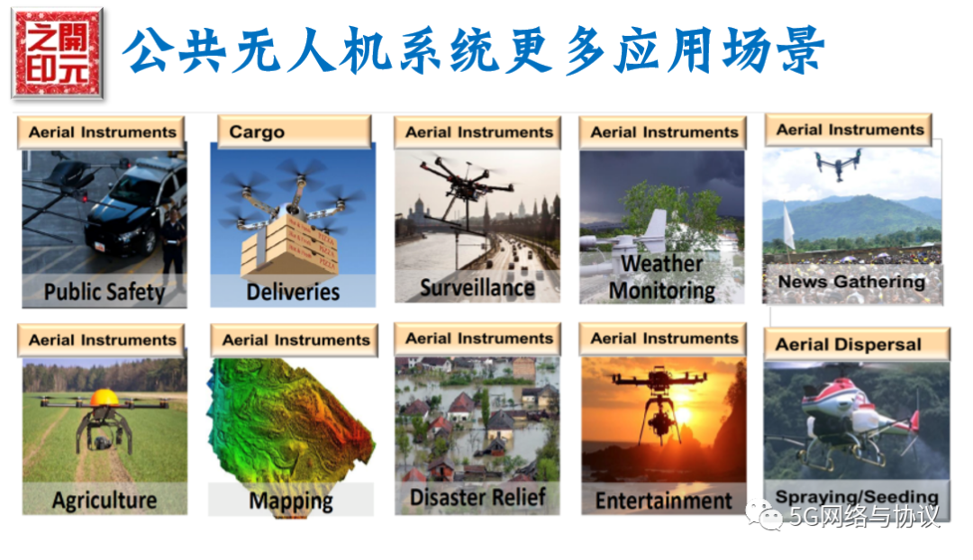 大家可能都知道了汽车的自动驾驶系统V2X(科普文章见CV2X基本概念小结),而UAS是无人机系统,即Unmanned Aerial Systems (UAS),等于将5G技术拓展到无人机控制领域。通常印象中,无人机在现实生活中的用途可以拓展到如下领域: