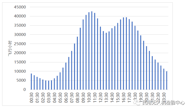 此部分对无人机运行时间进行了统计,以30分钟为时间间隔,具体见图7,图中时间为北京时间。目前我国的无人机运行主要是昼间运行。