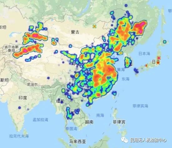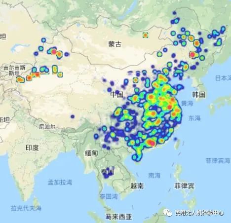 为了更为直观的看到注册于无人机云系统中的无人机运行区域,本报告按月份绘制了无人机运行区域分布图。从无人机运行区域热力图中可以看出,注册于云系统的无人机已在除中国以外的国家和区域运行,包括日本,韩国以及东南亚等国家和地区。