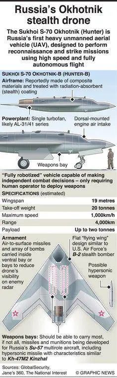 “猎人-B”无人机现在还是一个高度保密的机型,许多参数数据都不明确,有关俄罗斯“猎人-B”无人机的更多故事和信息,局座在最新一季《战忽知道》中都为大家做出了详细讲解,欢迎大家来投币围观。