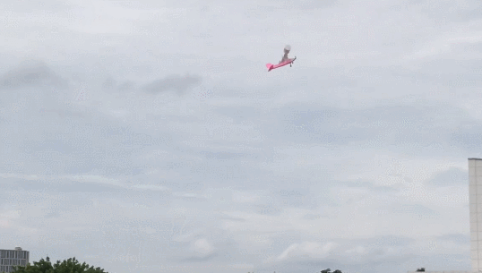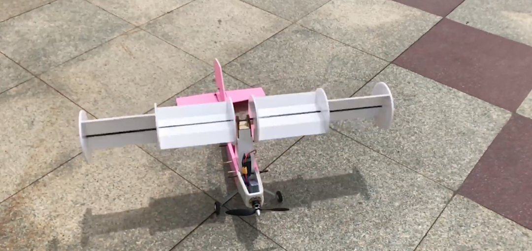 最终出现在视频中的飞机模型,让人眼前一亮——机身是粉红色的,长着一对滚筒般的白色“翅膀”。