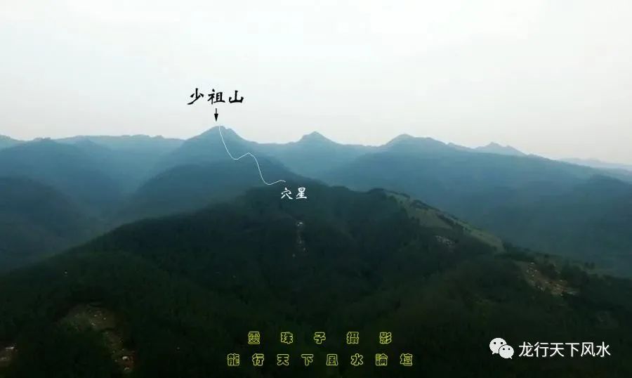 图1,少祖山辞楼下殿,二次跌伏即抬起穴星,中出大乳,龙虎砂左拥右抱。