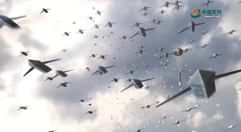 无人机蜂群作战想象图。图源:中国军网