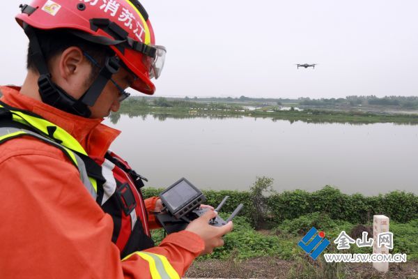 金山网讯 28日,镇江消防救援支队消防员在江心洲利用无人机巡堤与人工巡堤相结合,助力江心洲防汛抗洪工作更具速度、精度与力度,确保人民群众生命财产安全。马镇丹 庆经纬 摄影报道