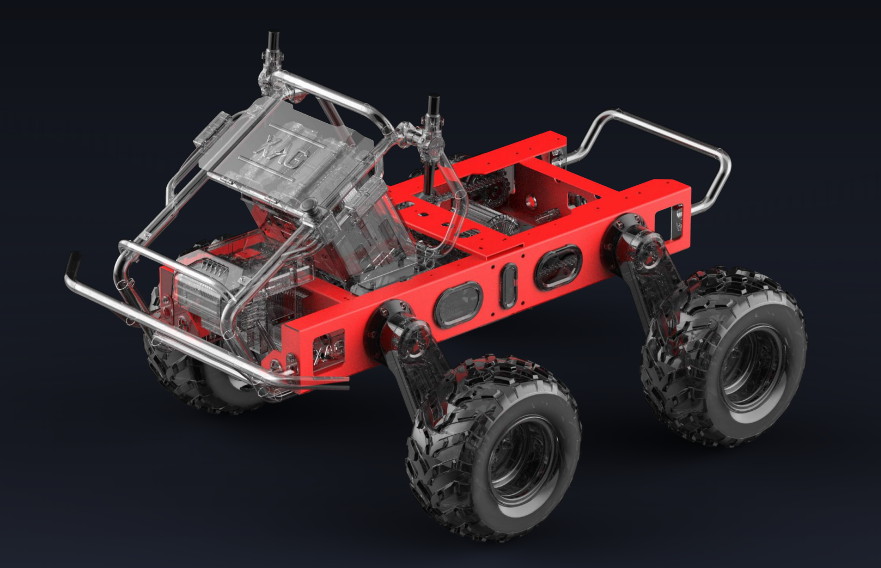 此外,R150 农业无人车采用了经典式极飞红防滚架设计,高强度一体化钢制车架,大大增强了车身强度和抗扭曲能力,使得 R150 更加坚固耐用,在车体发生意外时,可以全面保护车体,减少车损,降低车辆维护成本。