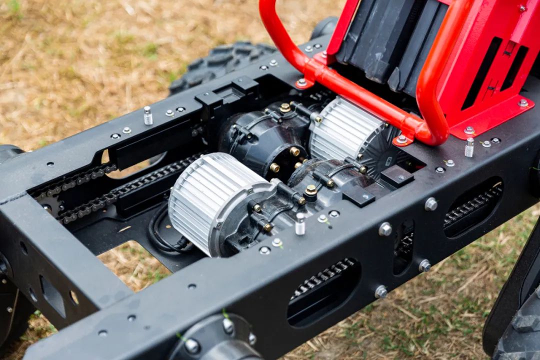首先,极飞 R150 农业车采用双无刷减速电机,总扭力最高可达 1000牛·米,拥有强大的瞬时暴发力,为越野提高强悍动力。